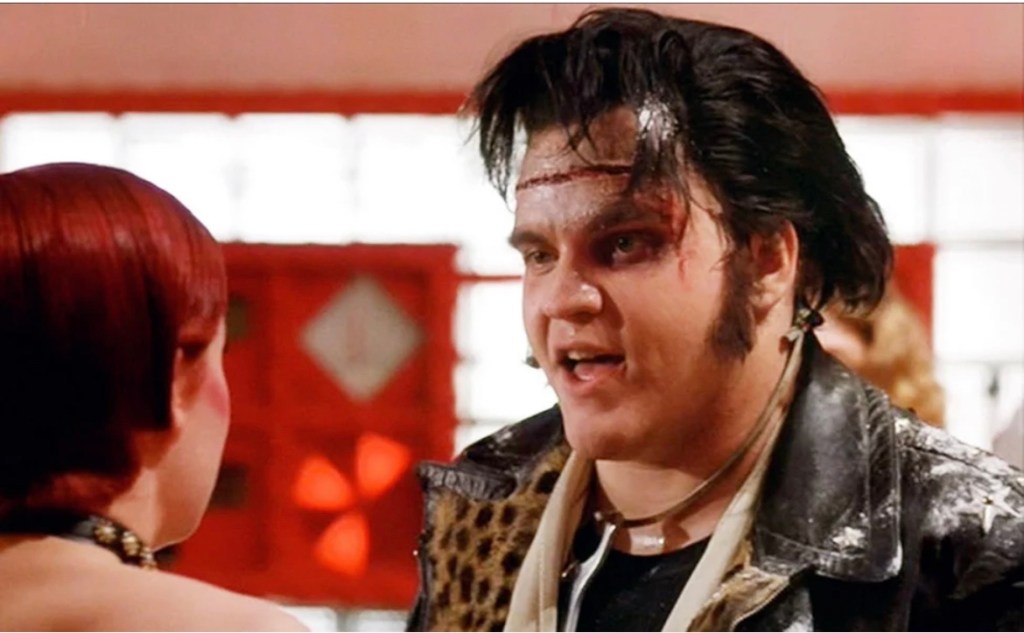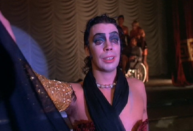 Arriving at the castle’s front gates, they meet Riff Raff (Richard O’Brien) and Magenta (Patricia Quinn), two eccentric servants of the castle’s master. After an iconic musical number (“The Time Warp”) in which we meet Columbia (Nell Campbell) and the master’s uniformed guests, the engaged couple meet Dr. Frank-N-Furter (Tim Curry). Dr. Frank-N-Furter is a self-proclaimed transvestite from the planet Transylvania, and his guests that night are present to witness his latest scientific triumph. Brad and Janet are urged to join in, their insistence that they only want to use a phone going ignored. Frank has been hard at work building his dream man, Rocky (Peter Hinwood), and he succeeds in bringing him to life that night. Following the sudden appearance of Frank’s last project, Eddie (Meat Loaf), Frank’s true colors begin to show. His fun and harmless demeanor reveals itself to be angry, jealous, manipulative, and violent in actuality.