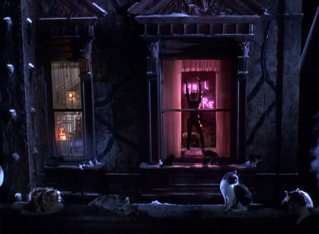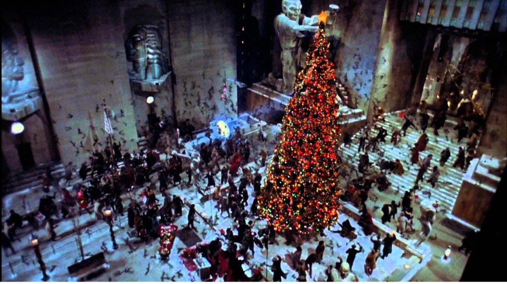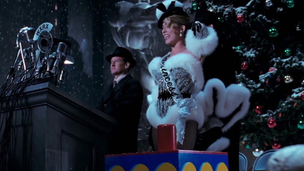 The story begins during Christmastime in Gotham City. A public ceremony for the lighting of the city’s enormous Christmas tree is underway. Recent sightings of the Penguin, Gotham’s most mysterious villain, has many of Gotham’s citizens on edge. In a conference room above the square, we meet soft-spoken Selina Kyle (Michelle Pfeiffer), assistant to the corrupt businessman Max Shreck (Christopher Walken). An ambush of clownish henchmen at the tree-lighting ceremony are met by Batman (Michael Keaton) while Shreck is taken deep under the city. His captor is the Penguin (Danny DeVito), who has big plans for which he is prepared to take drastic measures. He lets Shreck go when they strike a partnership. When Selina gets close to finding out about her boss’s profiteering at the expense of the people of Gotham, he pushes her out the office’s high-rise window.