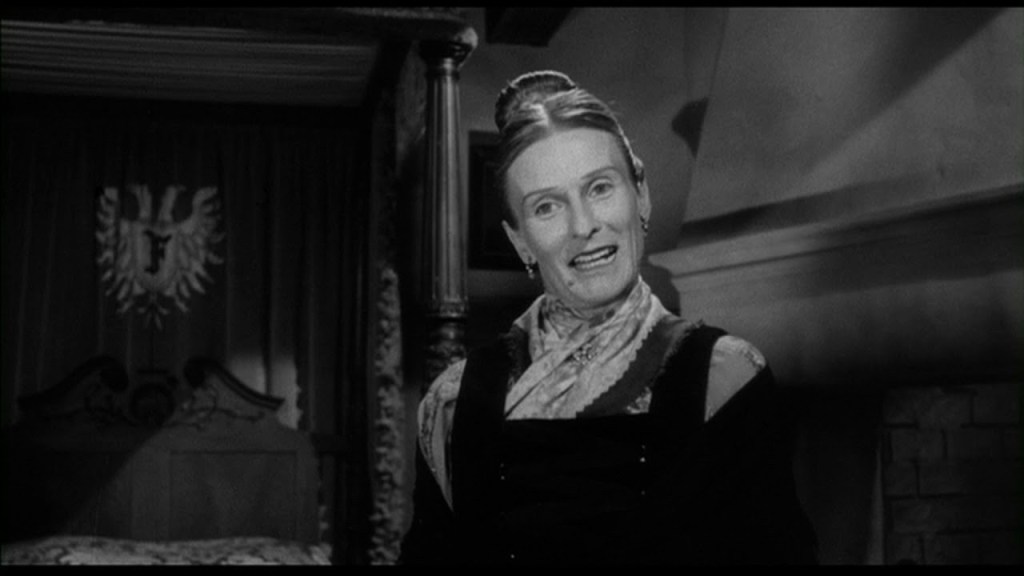 Frederick arrives at an isolated train station. He is greeted by Igor (pronounced Eye-gor), who will be assisting him during his time in Transylvania. In a carriage ride to the Frankenstein castle, Frederick meets local Transylvanian, Inga (Teri Garr), who has also been hired to assist at the castle. The trio are greeted at the castle’s massive doors by an eerie caretaker named Frau Blucher (Cloris Leachman). That night, Inga is drawn to Frederick’s room when he shouts from a nightmare. They both hear a violin playing within the walls. When they investigate, they come across Igor, who has also been lured by the music.