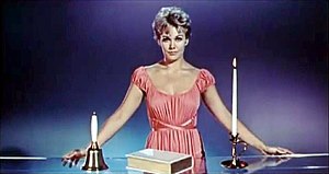Shepherd comes downstairs to use Gillian’s phone. Gillian’s Aunt Queenie Holroyd (Elsa Lanchester) enters the shop. She implores her niece to come to The Zodiac, a (literally) underground night club, to celebrate Christmas Eve with her family and friends. She invites Shepherd as well. When Shepherd leaves the shop, Queenie tries to convince Gillian to try casting a love spell on him, even just for practice. Both Queenie and Gillian are witches, but Gillian has lost interest in the craft and makes her aunt promise not to practice in the apartment building or pressure her into doing magic.