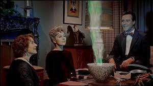 At The Zodiac, Shepherd arrives with his fiancée, Merle (Janice Rule). Merle happens to be a college acquaintance of Gillian’s, and they did not always get along. Gillian, her brother Nicky (who also practices magic), and Queenie leave The Zodiac for the snowy streets in the middle of the night. While Nicky (Jack Lemmon) practices turning street lights off with his powers, Queenie and Gillian discuss the repercussions of pursuing Shepherd (including Gillian losing her powers if she falls in love). At Gillian’s apartment, they exchange gifts and try a spell with an artifact Gillian receives. The spell produces a jet of green flame, which Shepherd sees through the window as he arrives home. He runs inside to help; the family quickly puts out the fire and try to act natural. Queenie and Nicky leave soon after to give the neighbors some time alone. When Shepherd tells her that he and Merle are getting married on Christmas Day, Gillian summons Pyewacket and starts humming a love spell while focusing on Shepherd. It works instantly. In their whirlwind romance, Gillian’s cosmic interference creates unexpected problems for them both.