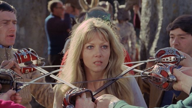 His patience wearing thin, Sgt. Howie confronts the community and accuses them of interfering with his investigation. He eventually gets enough information out of a schoolteacher to discover a grave marked with Rowan’s name. The islanders claim they do not believe in death as Christians do, and that is why no one said Rowan had died. To exhume the grave and finally get answers, he needs permission from Lord Summerisle, the ruler of the island. He meets Lord Summerisle (Christopher Lee) and shares his grievances. Summerisle defends the community and tries to explain their customs by sharing their history with Sgt. Howie. Summerisle is known for its fruit exports, especially apples. The islanders rely on their crops to survive (literally and economically). They believe their pagan lifestyle and rituals influence the land to yield their crops. With Lord Summerisle’s permission, Sgt. Howie has the grave excavated. He opens the coffin to find a dead March hare and no trace of Rowan.