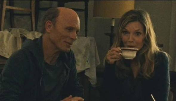 The movie begins with Mother (Jennifer Lawrence) waking up alone in bed. As she checks around and eventually finds her husband, Him (Javier Bardem), we see they live in a large octagonal Victorian house in a secluded, wooded area. They live a simple life: Him writes, and Mother spends her days restoring the house. The house had been Him’s house and had caught fire years before. One night, they are interrupted by a knock at their door. Him answers and welcomes in a man neither of them know (Ed Harris). Man is a doctor who claims he thought their house was a bed and breakfast. Him insists that he stay the night, while Mother is very uncomfortable with the sudden invasion. The next morning, Man’s wife (Michelle Pfeiffer) shows up at their front door. Man and Woman make themselves at home and show no signs of leaving.